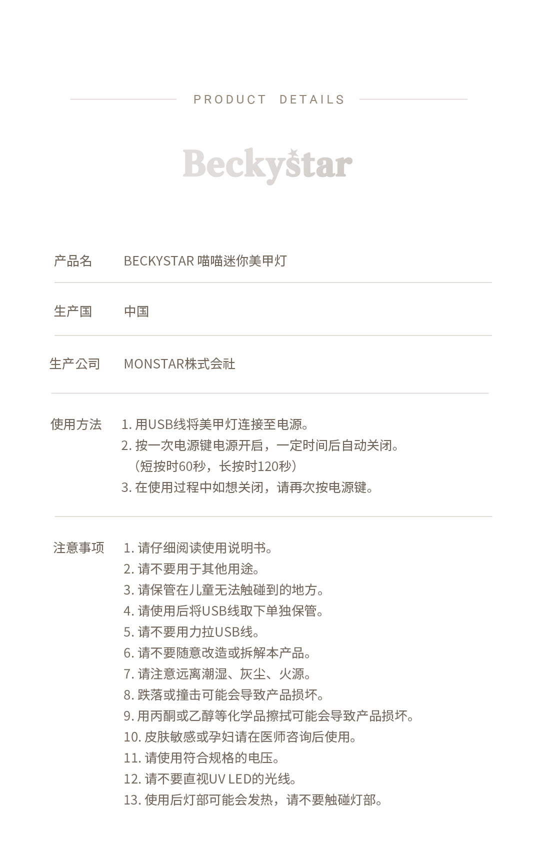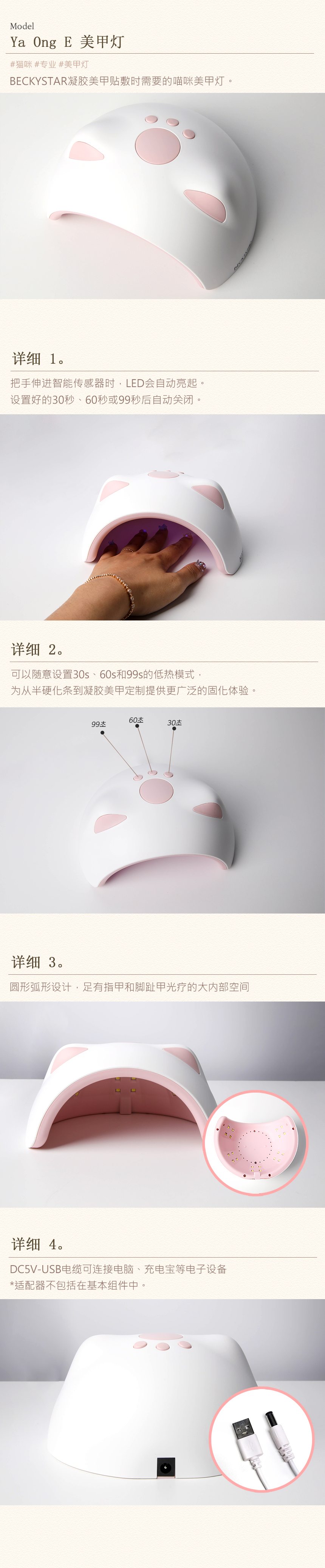 BECKYSTAR ya Ong E Mini UV LED 凝胶灯凝胶指甲贴 Pedi Self Lamp