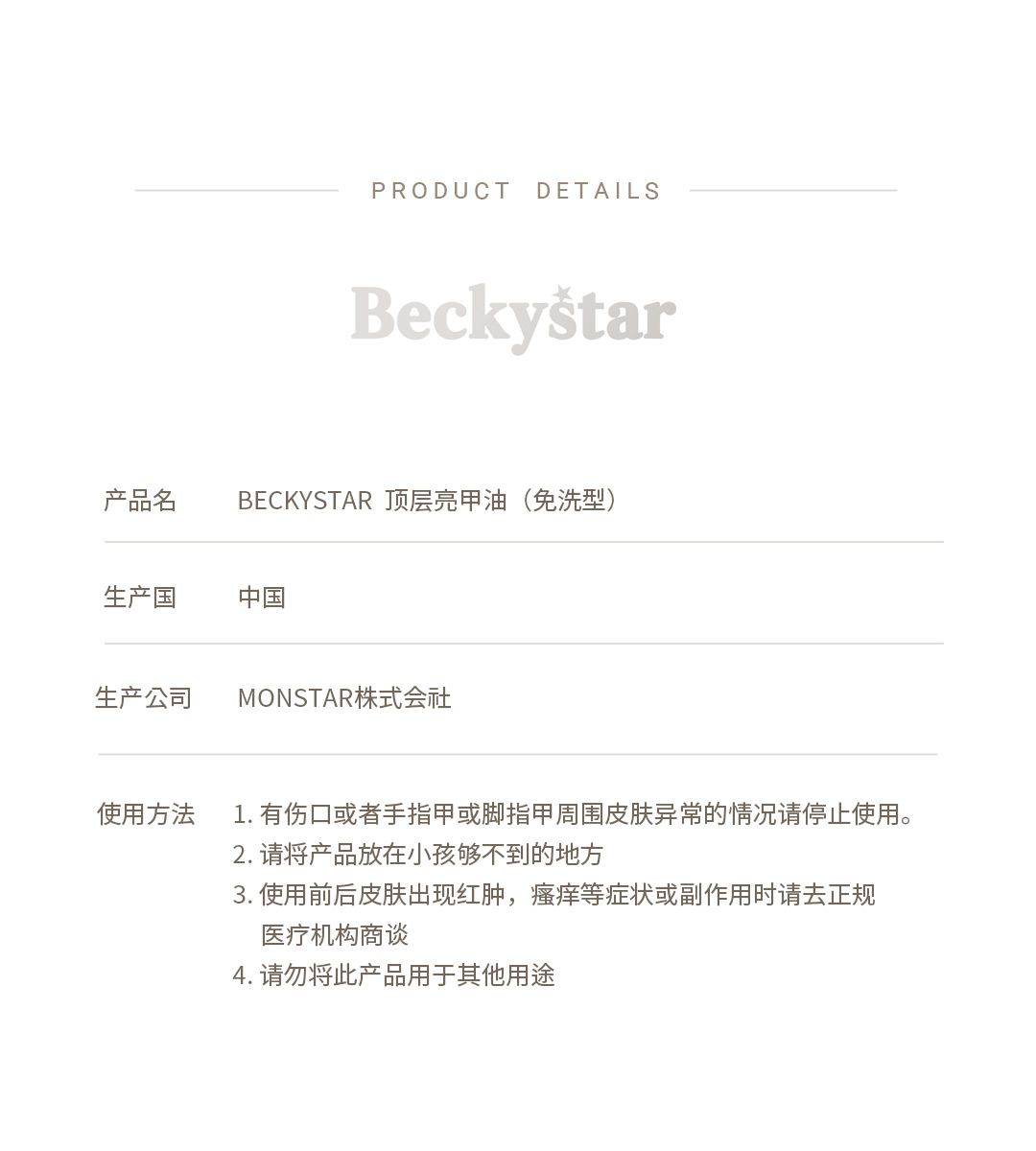 BECKYSTAR 亮光 顶油胶 10g